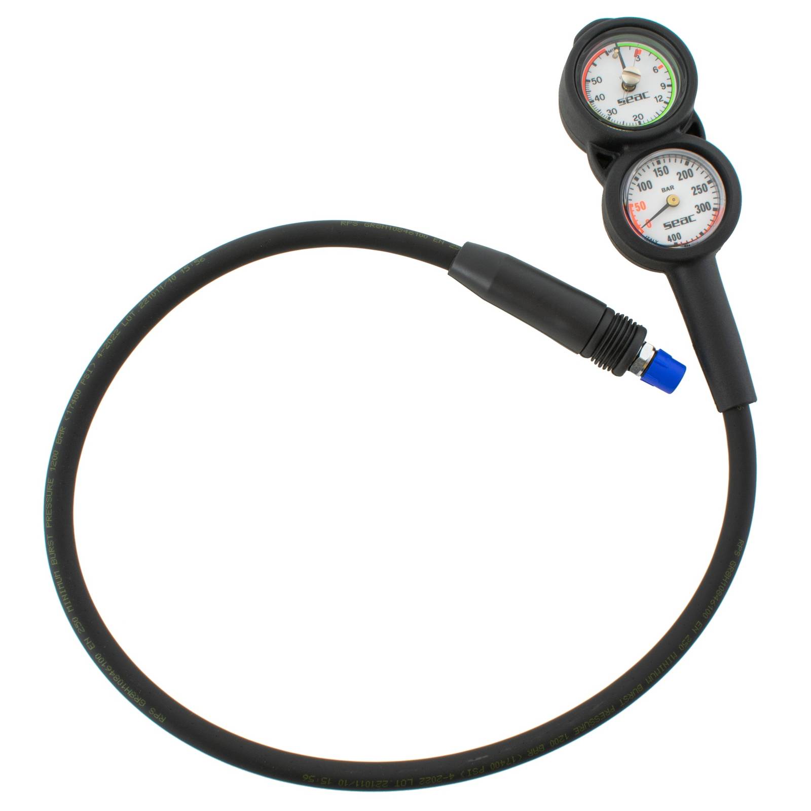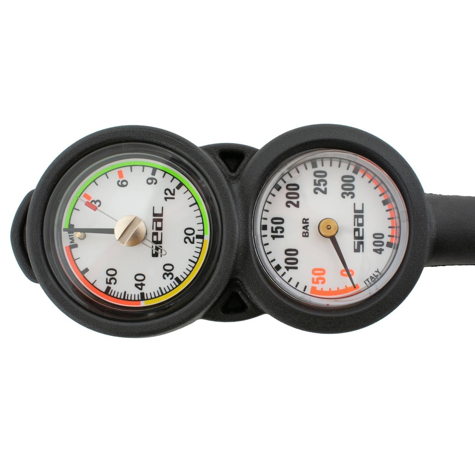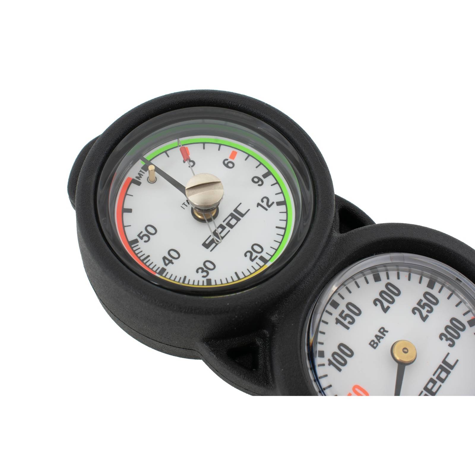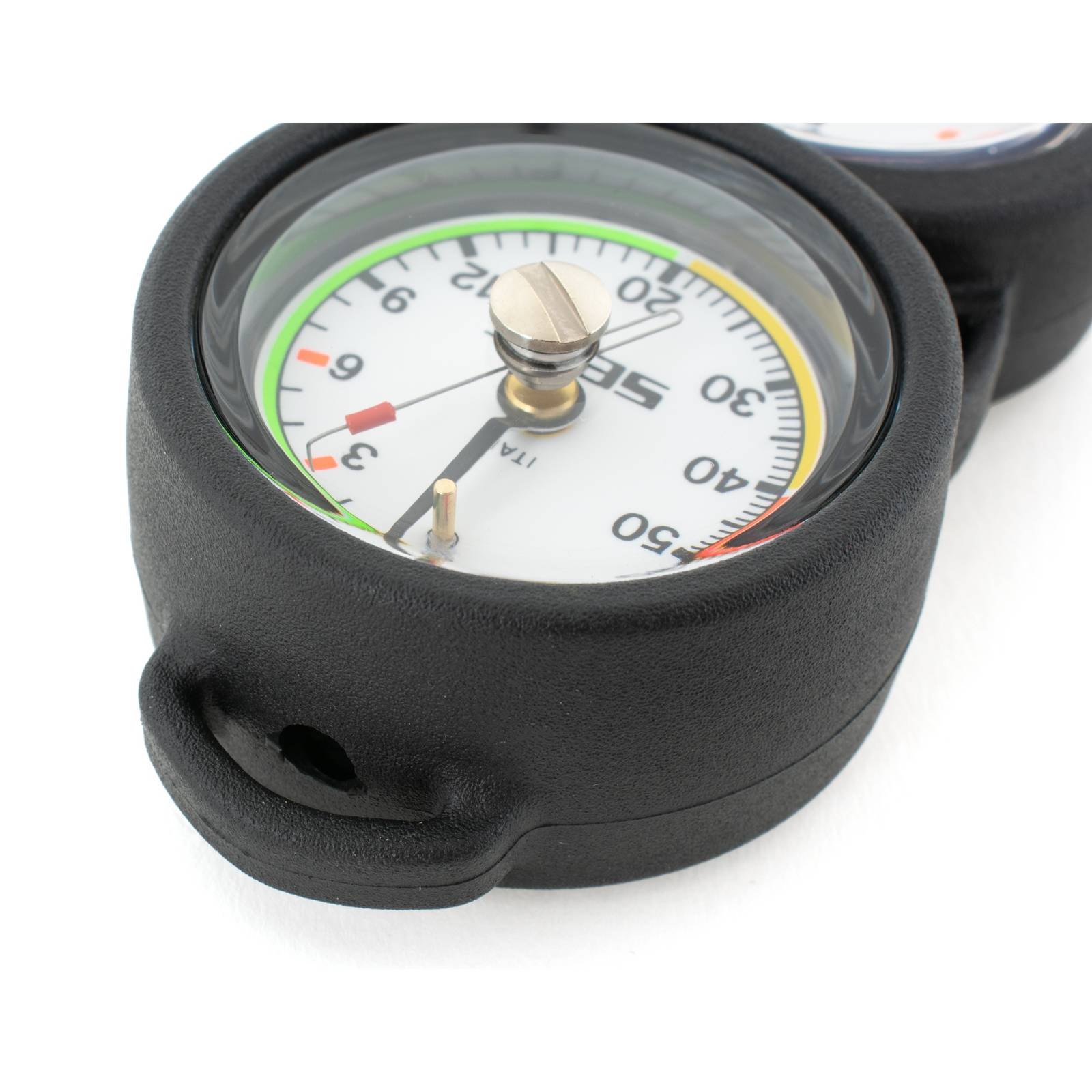 The Console 2 Compact Seac 60-11 is an essential analog pressure gauge designed for divers seeking precision and reliability underwater. Constructed with an internal spiral system, it utilizes a Bourdon gauge in an oil bath for accurate depth readings, ensuring that divers can confidently explore depths of up to 70 meters, with gradations marked in one-meter increments. The luminescent face provides unparalleled visibility in low-light conditions, enhancing safety during dives at dusk or dawn. Its compact design and robust materials make it a durable companion for any diving adventure, while its user-friendly layout ensures ease of use for divers of all experience levels. This gauge not only enhances performance and safety but also proves to be a reliable tool in various underwater environments.