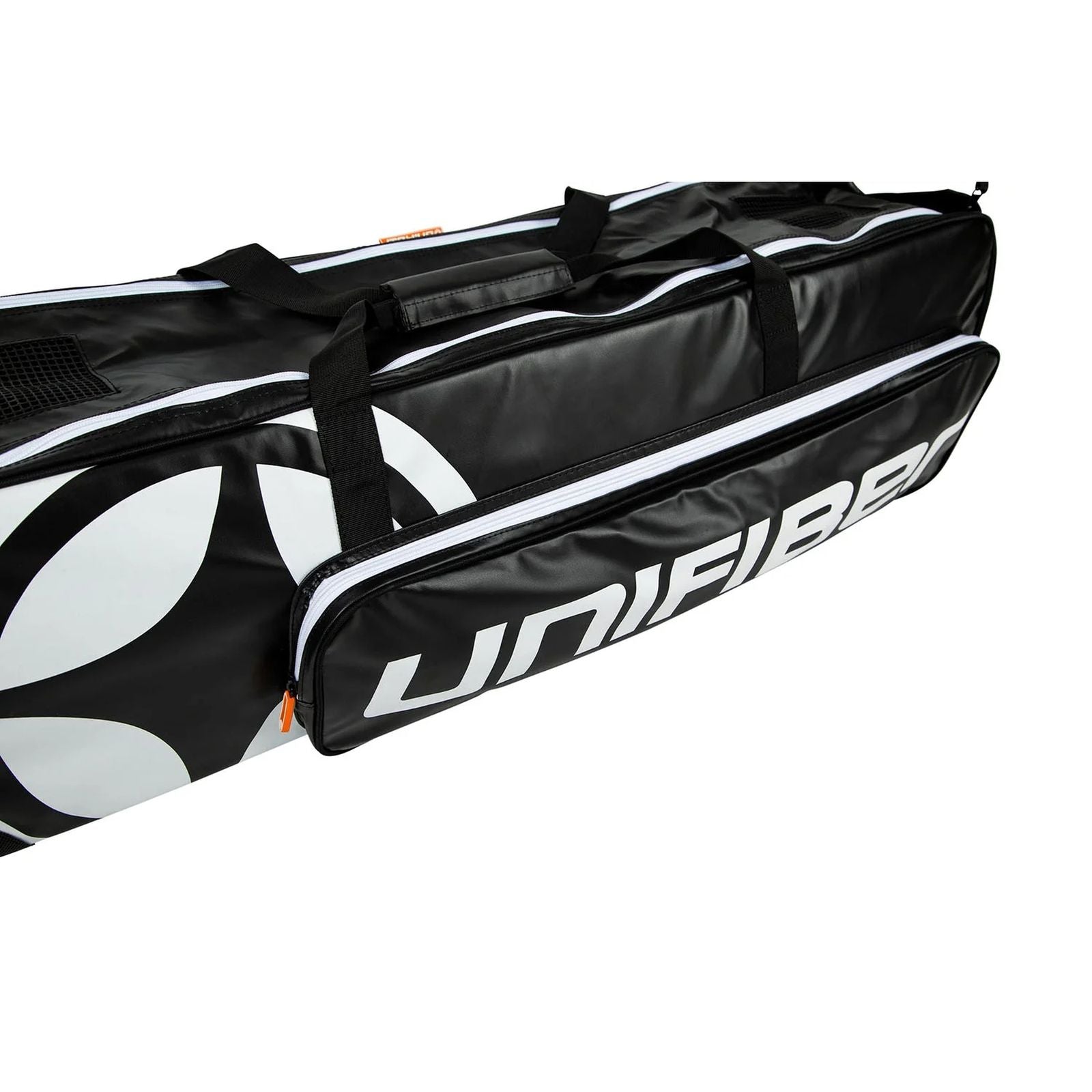 La bolsa de transporte Blackline de Unifiber está diseñada específicamente para el transporte y almacenamiento seguro de hidrofoils, con compartimentos internos que organizan y protegen cada componente del foil. Fabricada en poliéster repelente al agua con 10 mm de espuma EPE en el exterior y 6 mm de acolchado en los compartimentos, ofrece protección frente a impactos y abrasiones, además de facilitar su limpieza. Su distribución interna permite alojar hasta 3 front wings, 2 rear wings, 1 fuselage y 1 mast, manteniendo espacio adicional para tornillería, herramientas y accesorios. Incluye una cartera de velcro para herrajes (hardware wallet) que se puede extraer para un acceso rápido durante el montaje del foil. Su diseño pensado para el transporte ofrece compatibilidad con una correa de hombro desmontable, lo que facilita movilizar el equipo en viajes o desplazamientos. Es una solución práctica tanto para usuarios recreativos como para riders avanzados que requieren organización, protección y rapidez en el montaje.